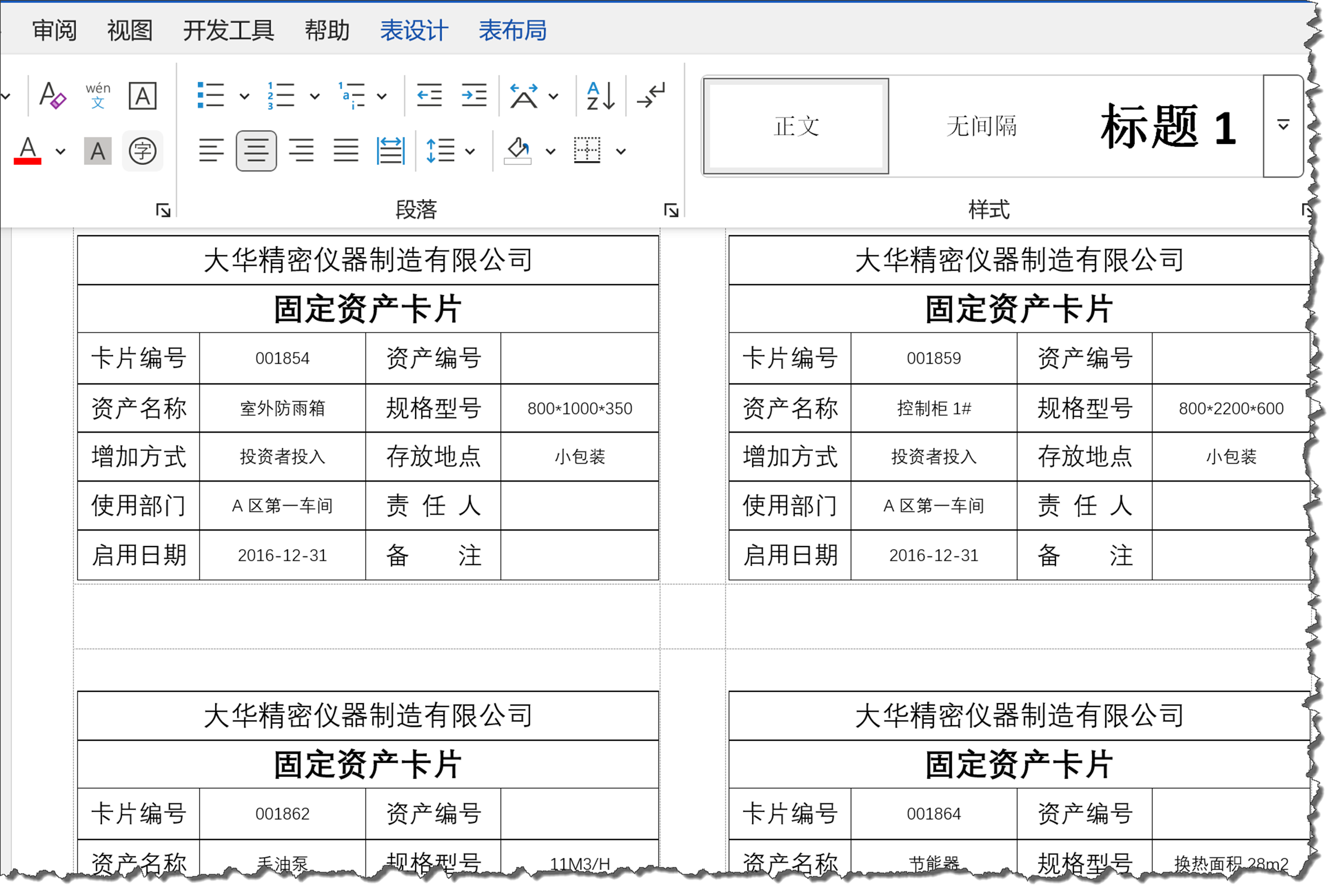 这不,财务科的小娟就遇到一个棘手的问题,领导给了一份Word文件,里面是几百个固定资产卡片的小表格: